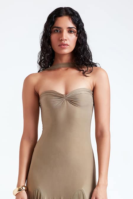 Grey Net, Maheshwari Sweetheart Neck Berta Godets Detailed Gown