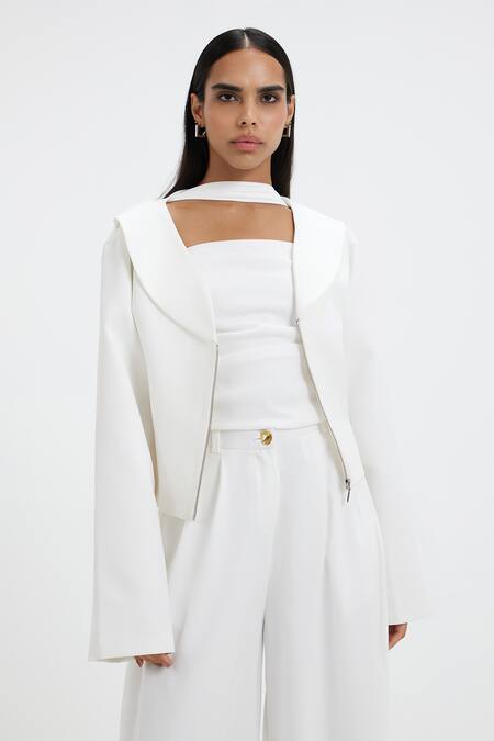 White Asymmetric, Bandeau Neck Quinn Pleated Side Slit Top