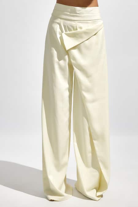 White full sleeves solid oversized blazer featuring a lapel collar neckline. Paired with a tailored trouser for a complete look.