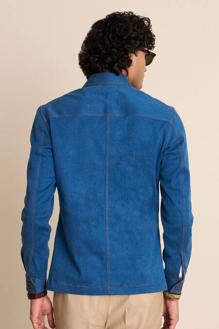 Metal rivet detailing on patch pockets, Gold thread top-stitching, Buttoned cuffs