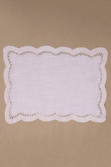 Pink 100% Cotton Cambric Cutwork Embroidered Table Mats 4 Pcs Set