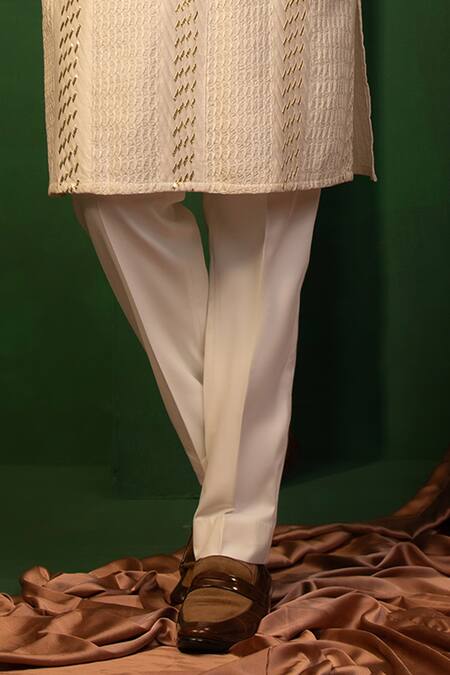 White Silk Embroidery Gota Dori Hand Kurta With Pant