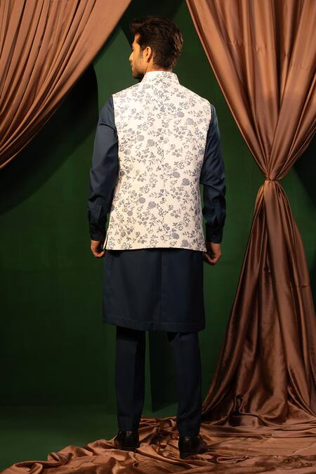 Buy_Design O Stitch_Navy Cotton, Suede Digital Print Bundi Kurta Set_Online_at_Aza_Fashions