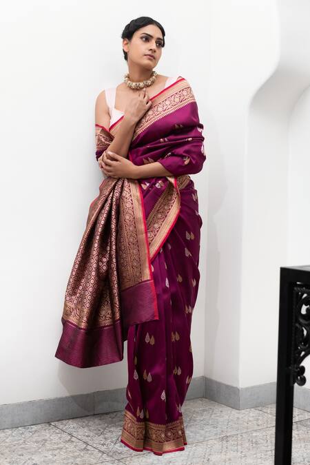 Magenta Pure Katan Silk Paisley Banarasi Floral Woven Handloom Saree