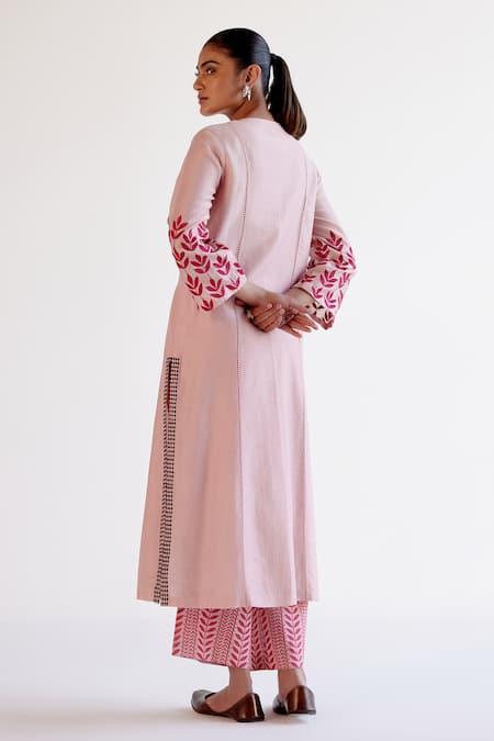 Blush Silk, Chanderi, Cotton, Kota Doria Embroidery Round Neck Pink Kurta Set