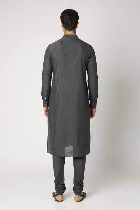Buy_Bubber Couture_Grey Cotton Silk Devraj Kurta Set_at_Aza_Fashions