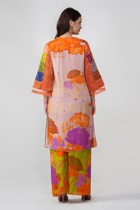 Buy_Devyani Mehrotra_Multi Color Viscose Muslin Printed Multicolor Embroidered Kurta And Pant Set_Online_at_Aza_Fashions