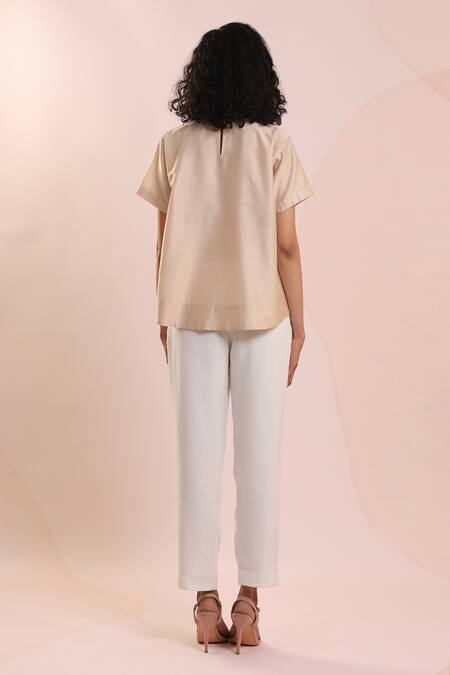 White Chanderi Embroidery Round Neck Abstract Patch Work Top