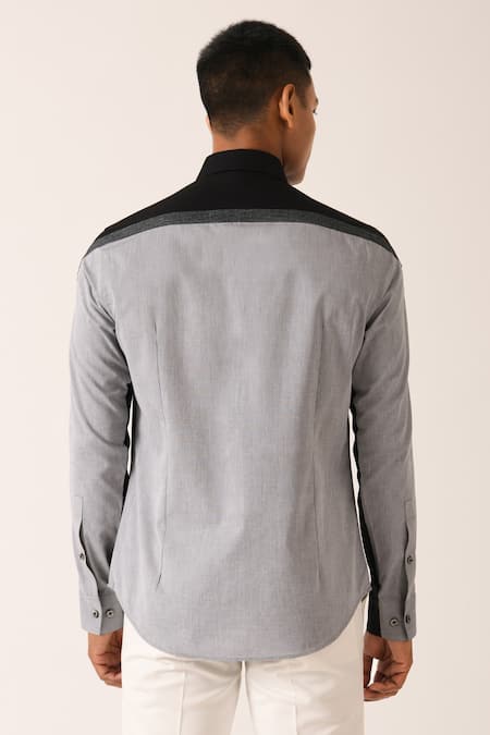 Black Cotton, Denim Color Block Shirt