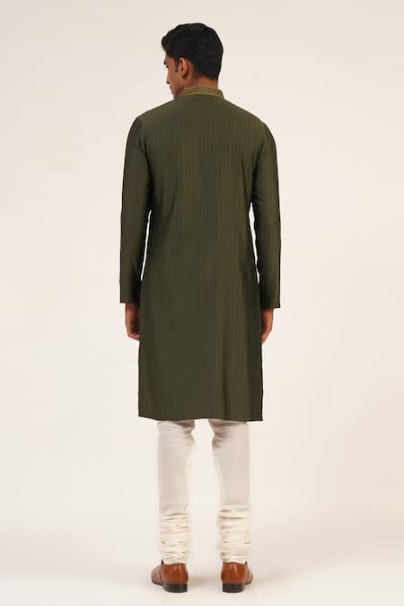 Buy_Dhruv Vaish_Green Modal, Satin Embroidery Cotton Silk Neckline Kurta Set _at_Aza_Fashions