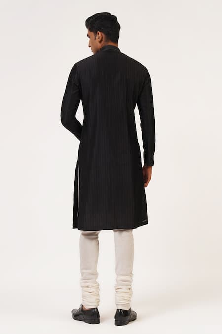 Buy_Dhruv Vaish_Black Modal, Satin Embroidery Draped Kurta And Pant Set _at_Aza_Fashions