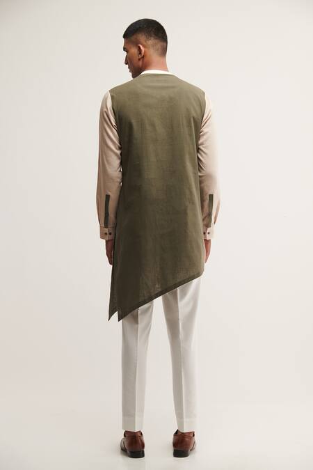 Vanilla asymmetric kurta with mandarin collar, diagonal placket & cuff sleeves.