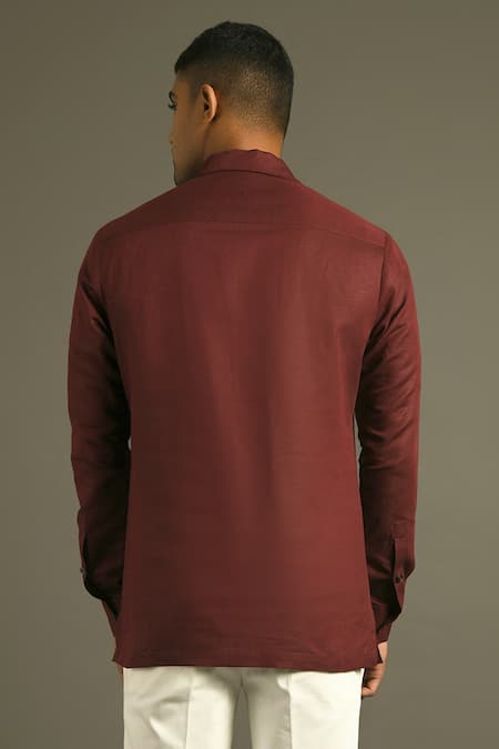 Buy_Dhruv Vaish_Maroon Handloom Cotton Linen Shirt _Online_at_Aza_Fashions