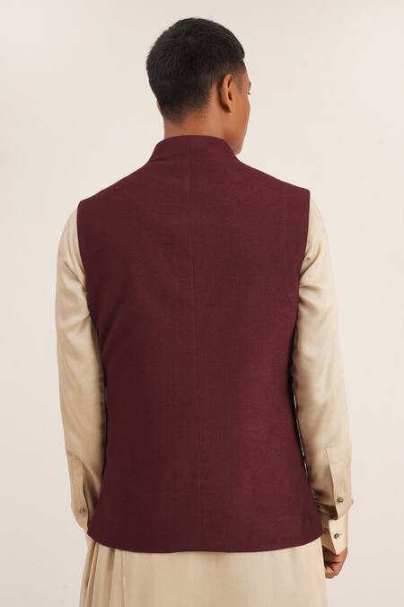 Purple Textured Cotton Silk High Neck Jawahar Jacket