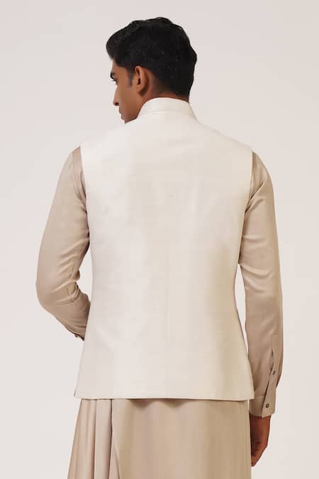 Buy_Dhruv Vaish_Ivory Silk Zari Embroidered Jawahar Jacket _Online_at_Aza_Fashions