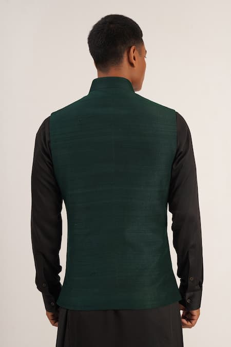 Green Raw Silk Jawahar Jacket