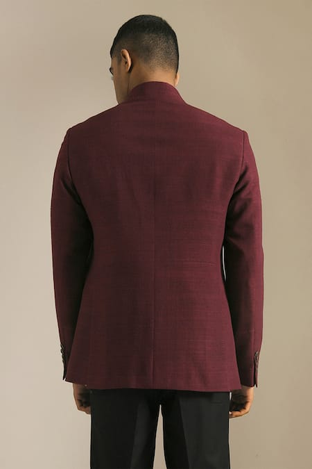 Merlot bandhgala with panelled detail, flap pockets & front button placket.