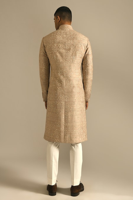 Buy_Dhruv Vaish_Beige Silk Embroidered Sherwani Set _Online_at_Aza_Fashions