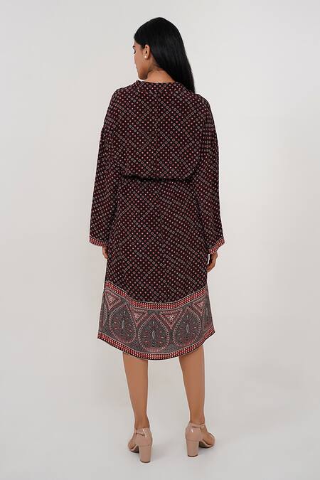 Buy_More Soul_Brown 100 % Viscose Print Diamond Spread Collar Tile Dress_at_Aza_Fashions