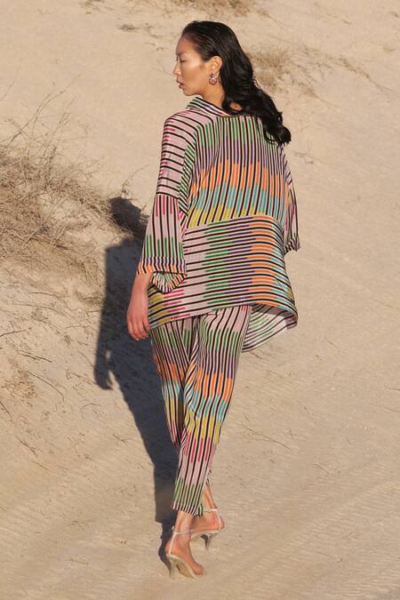 Buy_Twinkle Hanspal_Multi Color Crepe Chevron Spread Collar Diana Draped Shirt And Pant Set_at_Aza_Fashions