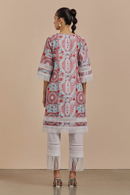 Sage Saga_Green Cotton, Organza Lace Digital Print Kurta And Pant Set_at_Aza_Fashions