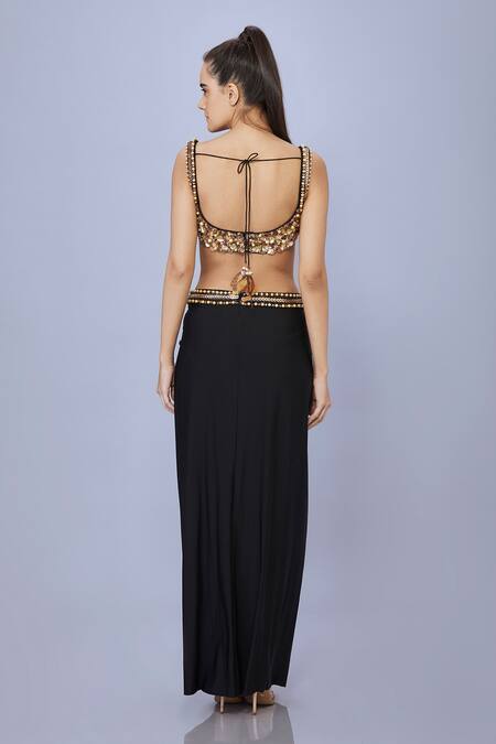 Black Lycra Embellished Bead Crystal Draped Skirt