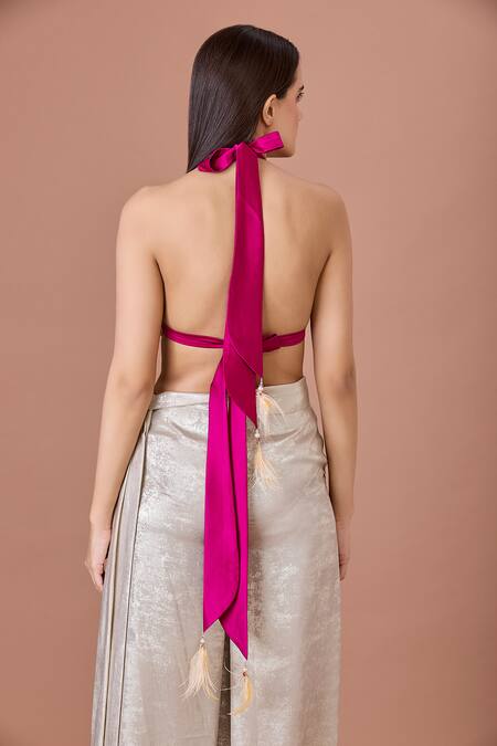 Jamun tie up bustier featuring halter neck design adorned with crystals and sequins embroidery