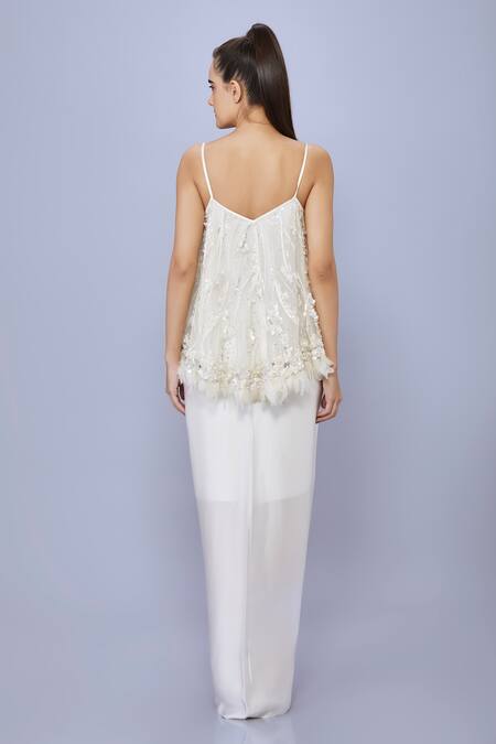 Ivory strappy cami top featuring bead, sequin and pearl embellished wave patterns