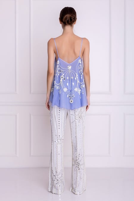 Purple Net And Viscose Georgette Embellished Hand Embroidered Camisole
