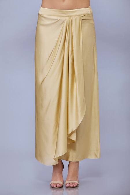 Beige Blended Satin Solid Draped Skirt