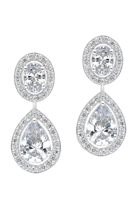 White drop earrings crafted from 925 sterling silver featuring oval and pear-shaped Swarovski zirconia