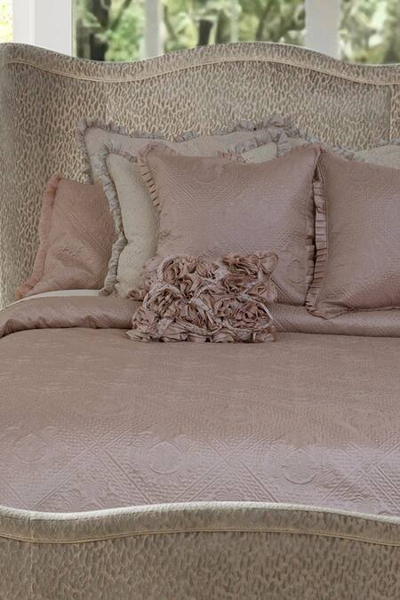 Peach quilted bedding set with paisley floral quilted pattern & pleated hem including, 1 bedcover & 2 cushion cover.