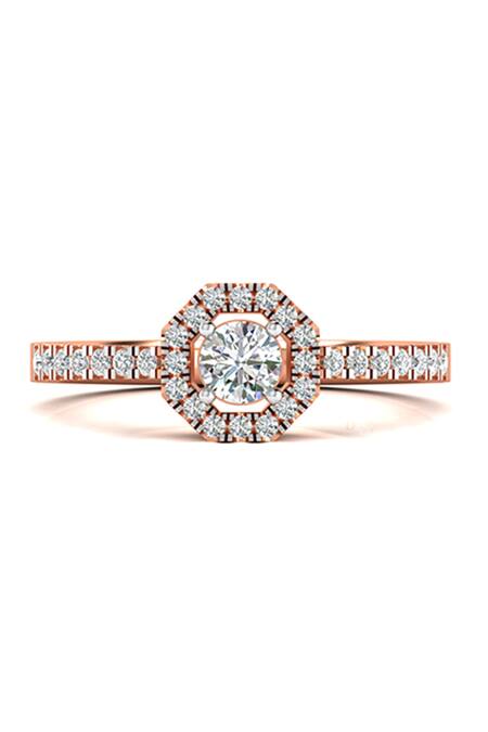 Rose Gold Imitation Diamonds 18kt Geometric Cutwork Studded Ring