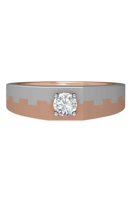 Round-cut solitaire diamond with K/VS2 clarity, Unique geometric pattern in rose and white gold