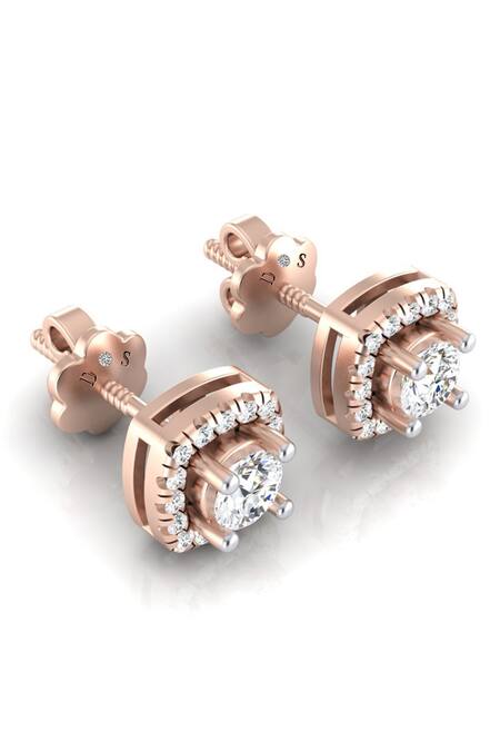 18kt rose gold studs featuring round cut diamond embellishments set in square motifs