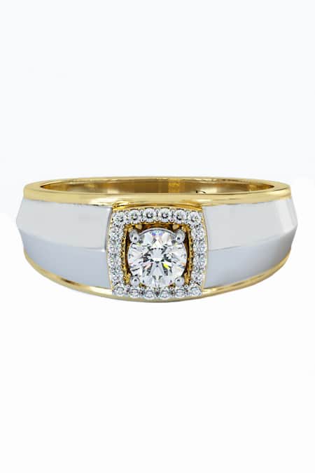 18kt yellow & white gold ring featuring a royal cluster design with diamond embellishments