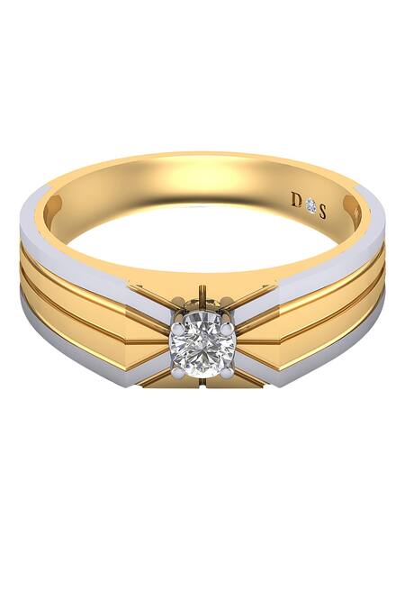18kt yellow and white gold ring featuring a stacked ray design with diamond embellishment