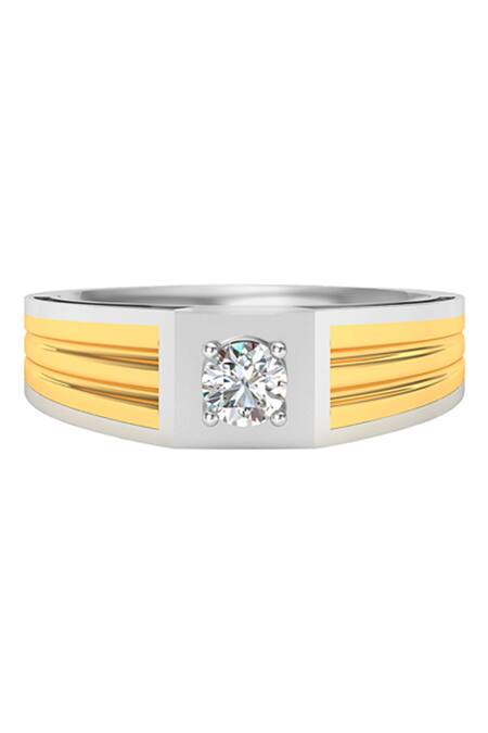 Carved cutwork design on the band, Adorned with round-cut solitaire diamond, 18kt gold composition
