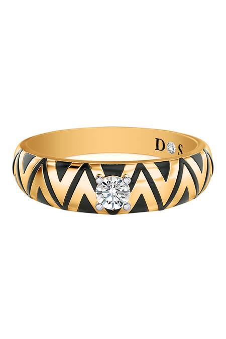 Chevron carved cutwork design, Round-cut solitaire diamond, Black enamel detailing