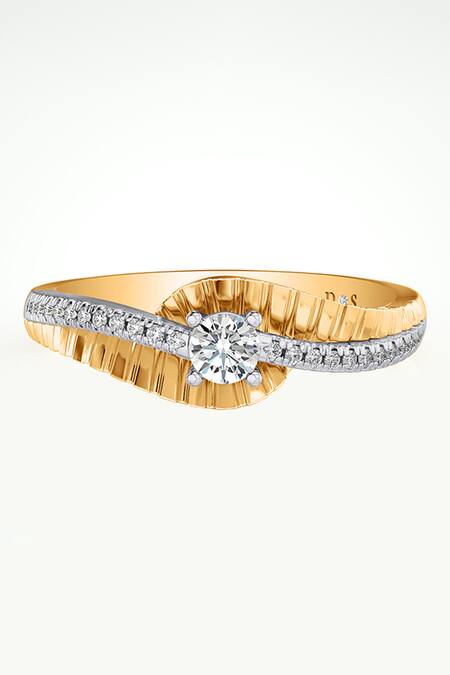 Yellow Imitation Diamonds Solitaire Textured Wave Ring
