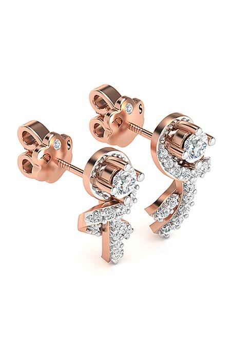 Buy_Divine Solitaires_Rose Gold Imitation Diamonds Geometric Cutwork Earrings_Online_at_Aza_Fashions