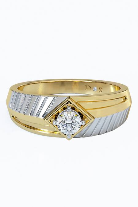 18kt yellow and white gold prism delt design ring featuring diamond embellishment