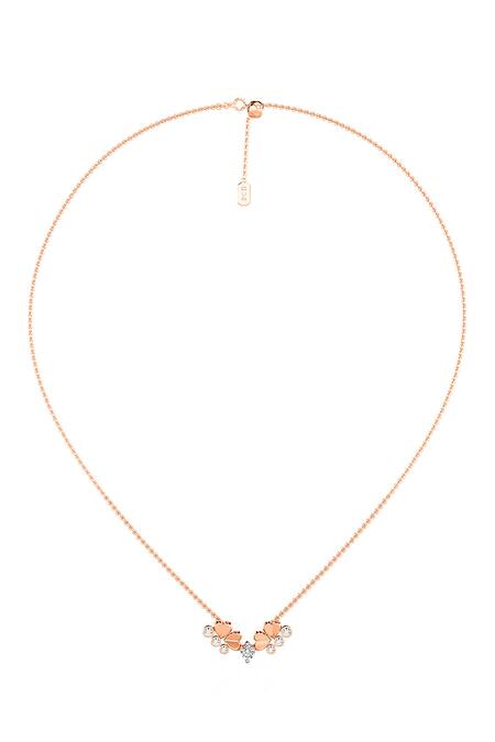 Rose gold pendant necklace featuring round cut diamonds with floral motifs. Embellished with a total solitaire carat of 0.23, perfect for elegant occasions.