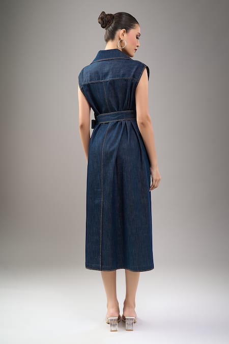 Blue Denim Collared Midi Dress