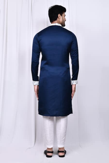Buy_Arihant Rai Sinha_Blue Satin, Cotton Embroidery Floral Placket Kurta With Pant