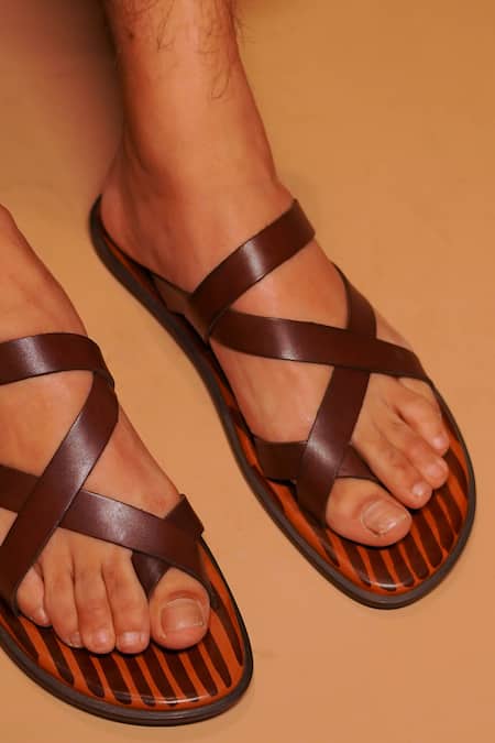 Brown Textured Flat Criss-cross Sandals
