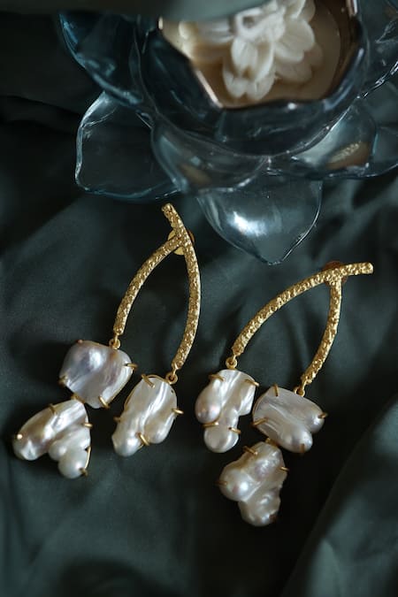 Gold Plated Beads, Pearls Baroque Textured Earrings