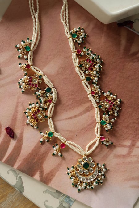 Multi Color Chand Nikhar Kundan Embellished Long Necklace