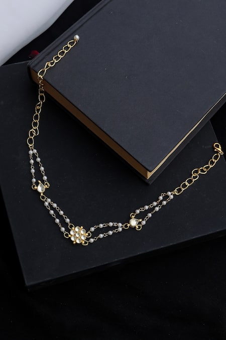 Floral and teardrop cut work motifs, Layered pearl beaded chains
