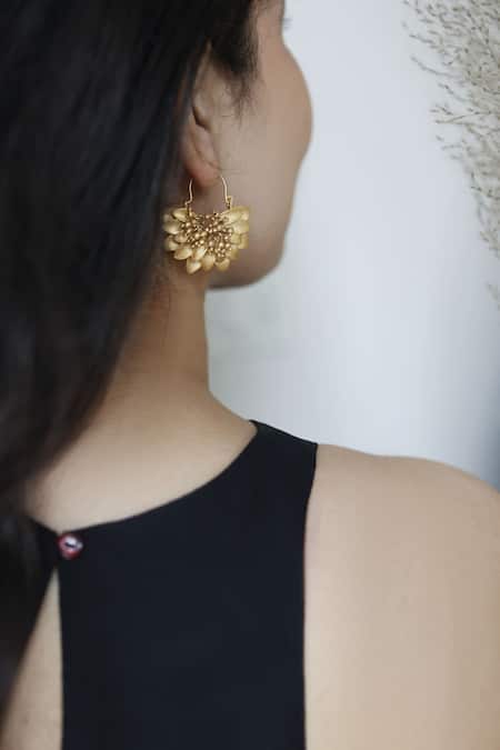 Gold plated hoops featuring a floral shape design embellished with tonal beads